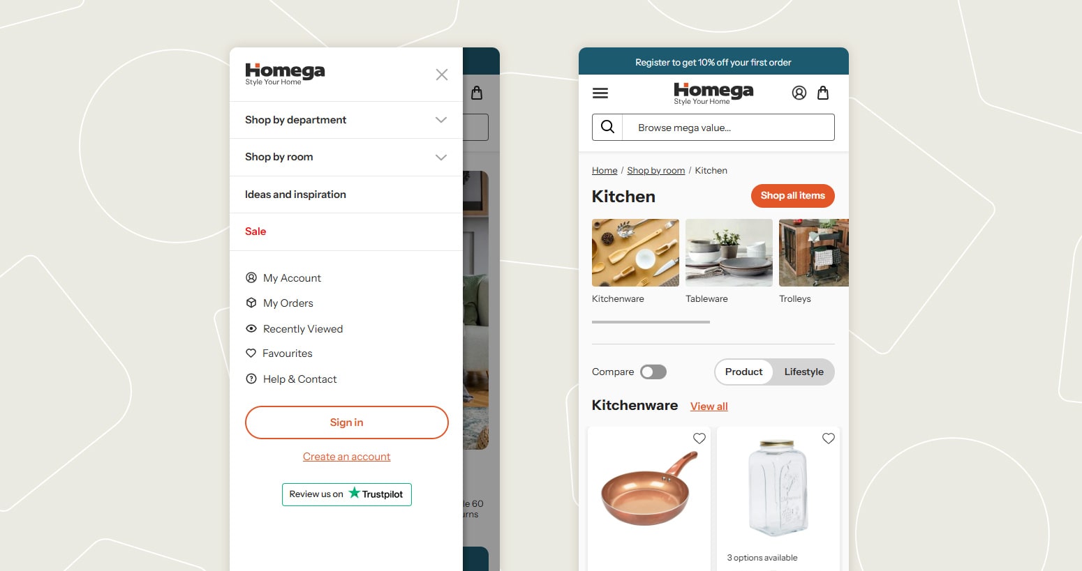 As well as many other key platforms, we are proudly partnered with BigCommerce to deliver modern, flexible design and builds like this website for Homega.